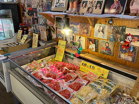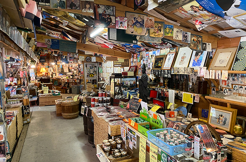 地元の野菜・山菜や乾物などの特産品、民芸品や骨董品など、おみやげにはピッタリの品揃えです。